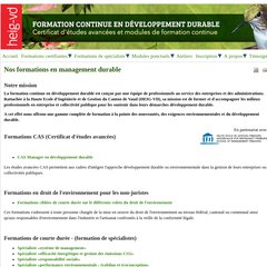 Themen: Accueil, Formations Certifiantes, Cas Manager En Développement Durable, Présentation, Objectifs Et Public Cible, & Modules De Formation Obligatoires.
